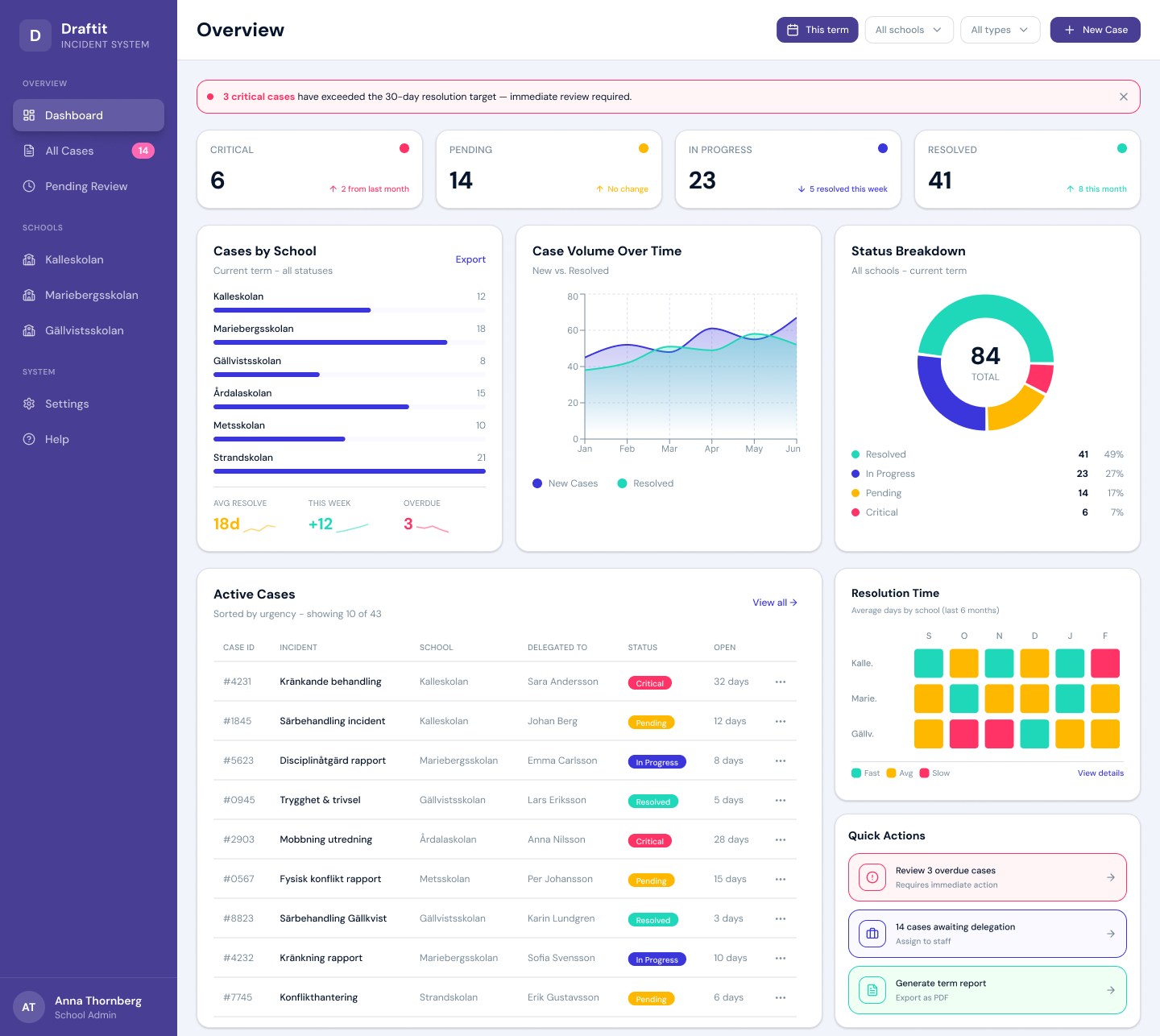 The redesigned dashboard shifted from passive information display to actionable overview. Case officers gained clearer visibility into workload distribution, case status and prioritisation.
